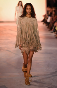 Boho chic's reemergence has come hand in hand with Western style taking over runways. Jackets with fringe, airy maxi dresses, frilly blouses, and metallic belts are making waves.